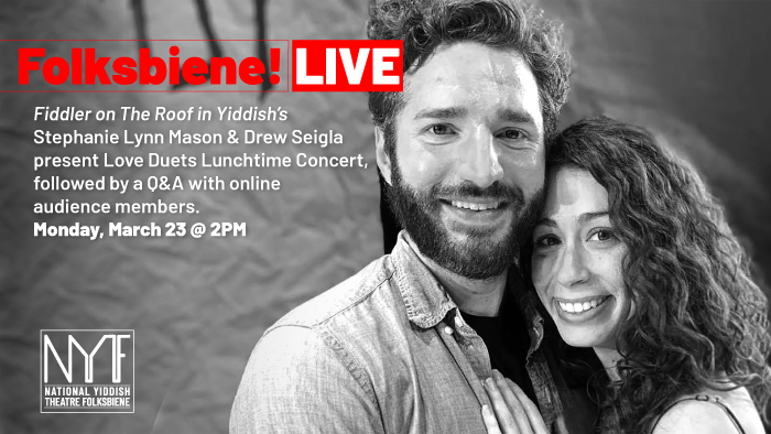 Stephanie Lynn Mason and Drew Seigla, stars of Fiddler on the Roof in Yiddish and real-life sweethearts, present a series of love songs and a Q&A with the audience.
